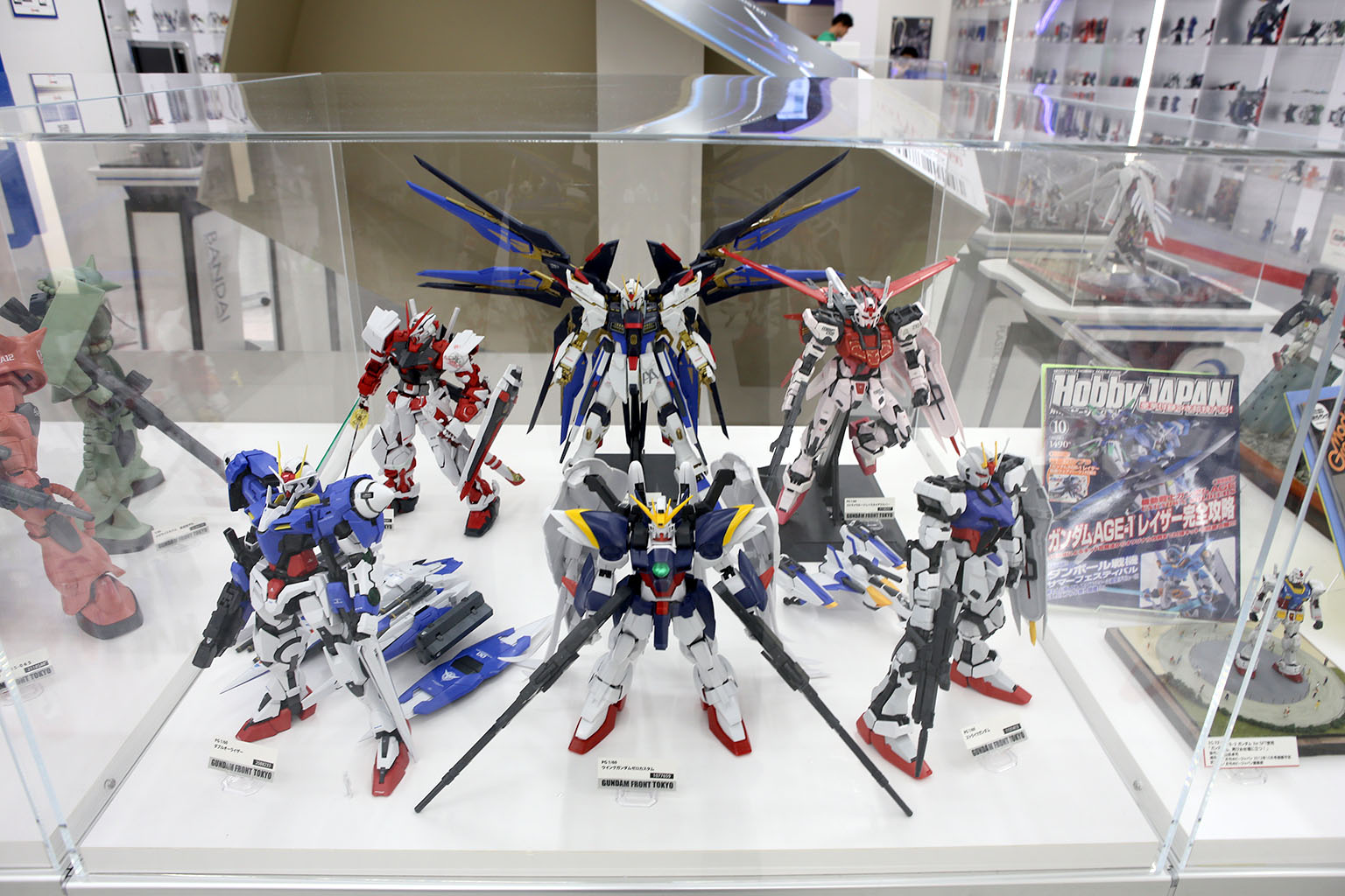 On your left as you enter is a museum are with just about all the Gundam toys ever made. Two giant rows with special display cases in the middle. You can see how they’ve evolved from very simple beginning to massive and complex models as time went on. They went through a lot of different style changes too. But it was pretty amazing to say the least. One could easily geek out of the whole line.